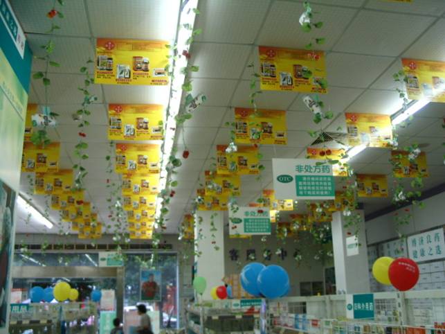 博濟康之選在所有的門店都掛有我司四大維價品種的吊旗