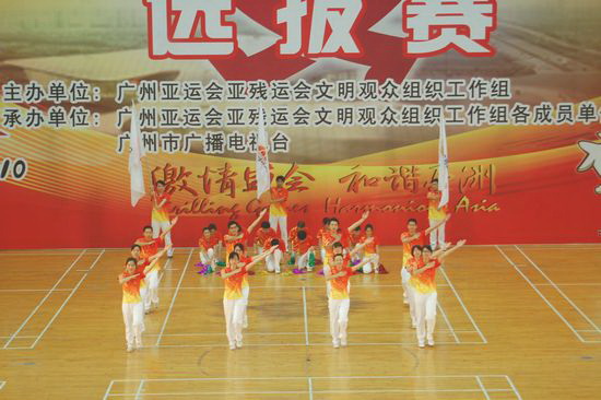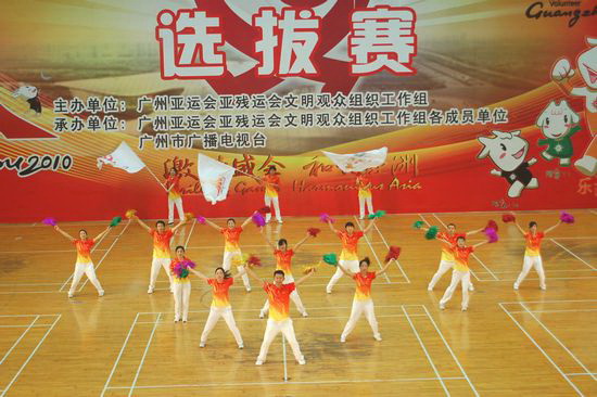 廣藥潘高壽亞運(yùn)助威團(tuán)成員嚴(yán)格按照亞組委及上級(jí)的有關(guān)要求,認(rèn)真做好本職工作,努力參加訓(xùn)練。隊(duì)伍組成后,人人都能按照要求,堅(jiān)持利用業(yè)余時(shí)間進(jìn)行各種項(xiàng)目和動(dòng)作的訓(xùn)練,并經(jīng)過(guò)嚴(yán)格的訓(xùn)練組成了一支作風(fēng)過(guò)硬,動(dòng)作標(biāo)準(zhǔn),紀(jì)律嚴(yán)明的亞運(yùn)志愿者助威隊(duì)伍,除了按亞組委、亞殘組委指定的規(guī)定動(dòng)作之外,還自創(chuàng)編排了一套精彩的自選動(dòng)作參加各級(jí)比賽。