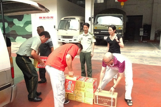 “八一”建軍節(jié)當(dāng)日,我司工會(huì)黃伯強(qiáng)主席和黨辦譚慕常干事一行代表公司到武警廣東邊防總隊(duì)藝術(shù)團(tuán)進(jìn)行節(jié)日的慰問,向藝術(shù)團(tuán)武警官兵們送上我司的消暑涼茶、潤(rùn)喉糖等產(chǎn)品。