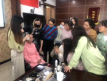 美妝課由資深化妝師陳婷婷老師主講。陳老師曾獲得多個國家頂級級別設(shè)計造型師、化妝師認證。老師講得細致、耐心,同學們聽得認真,投入。追求美、感受美是女同胞永恒的共同話題,似乎一轉(zhuǎn)眼就到了下課的時間。