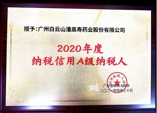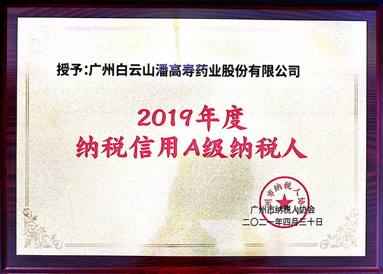 祝賀潘高壽榮獲2019-2020年“納稅信用A級納稅人”稱號