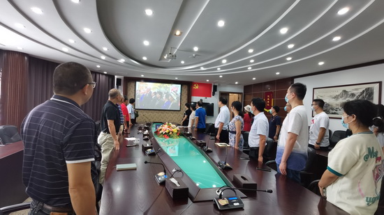 6月29日上午,白云山潘高壽黨政領導班子、各支部黨員、業務骨干30余人在辦公樓一樓會議室集中收看“七一勛章”頒授儀式直播,學習中共中央總書記、國家主席、中央軍委主席習近平發表的重要講話,向29位“七一勛章”獲得者致以崇高的敬意!他們是國家棟梁、民族先鋒,也是社會楷模、行業翹楚,是新征程的榜樣引領,激勵著潘高壽廣大黨員干部凝聚力量、同心向黨,創造出不負歷史、不負人民、不負時代的嶄新業績。